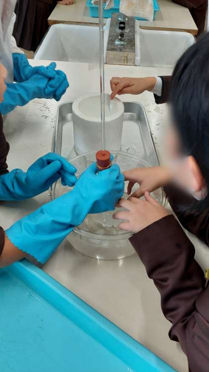 理科の学習で、水の体積について学習しました。この日は、冷やしたり温めたりするとどうなるのかを実験しました。
