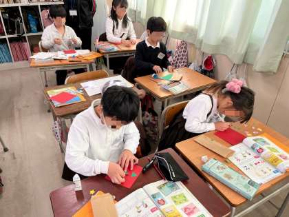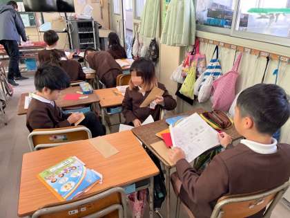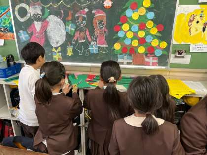 外国語活動では、お店屋さんになって英語で注文を取り、アイテムをあつめてクリスマスカードを作りました。とても素敵なカードがたくさんできました♪