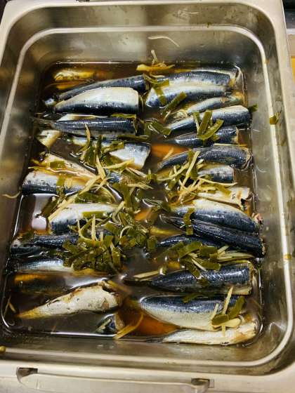 今日は、千葉県産のいわしに切りこんぶやしょうがと調味料を入れて煮ました。各学級では給食委員の5年生がナレーションを入れたパワーポイントで、いわしの栄養などについて学びました。