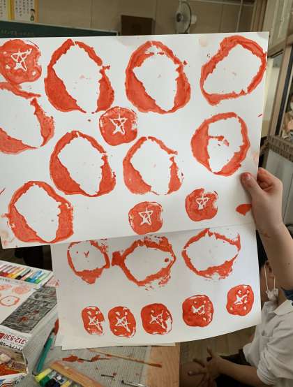 学習園で作ったおいもがこんなに素敵なスタンプに大変身しました!!