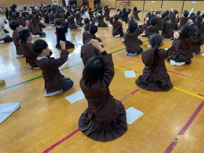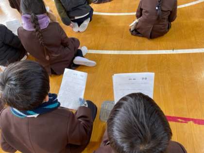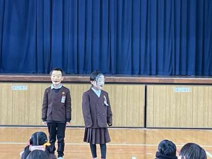 鼓の打ち方の動きや能面の体験もさせていただきました。