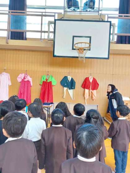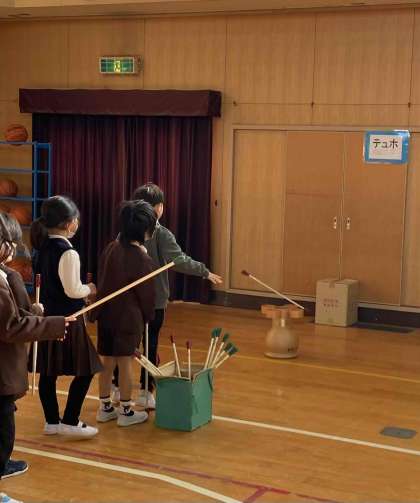 身近な国の文化に親しむ週間で、子どもたちは、外国の遊びを楽しみました。
