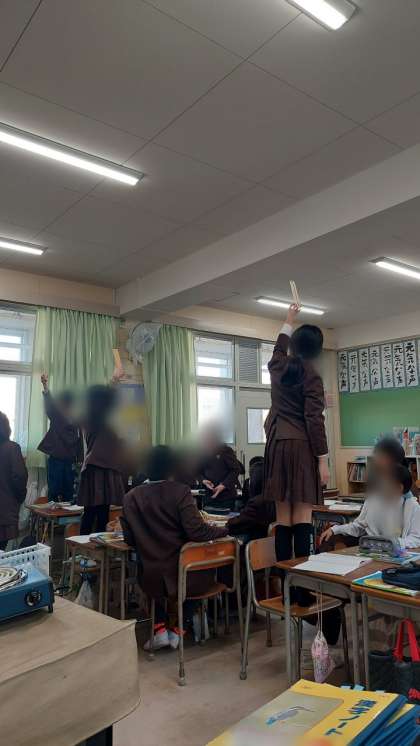 理科では空気のあたたまり方について学習しました。教室を暖まっていない状態にしてから、暖房をつけ、低いところと高いところの温度を調べました。