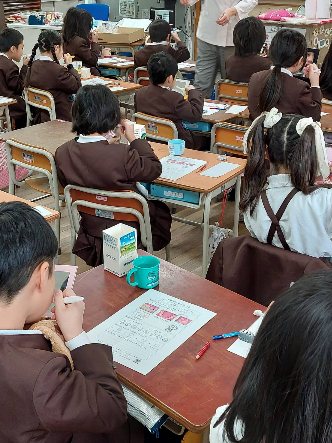 2月2日、歯科衛生士さんに来て頂き、歯みがき指導を行いました。まず、虫歯は歯垢が原因となることを教えてもらいました。その後、歯垢を染める赤い染料を歯につけてもらって、鏡を見ながら丹念に歯を磨きました。
