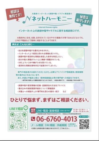 大阪府インターネット誹謗中傷・トラブル相談窓口のご案内