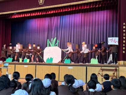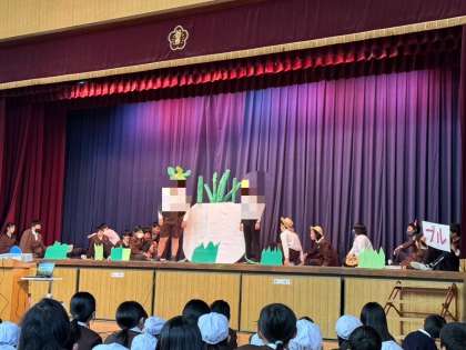 委員会の児童が、劇「おおきなかぶ」を演じ、