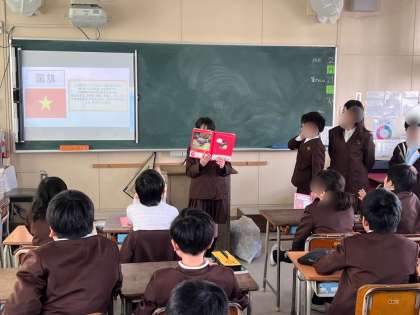 その国の国旗の意味や文化について、スライドにまとめて、わかりやすく発表できました。