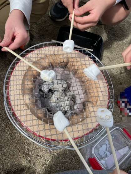 七輪でマシュマロを焼いています!「昔の人たちはこうやって焼いてるんやぁ!」と子どもたちも驚いていました^_^