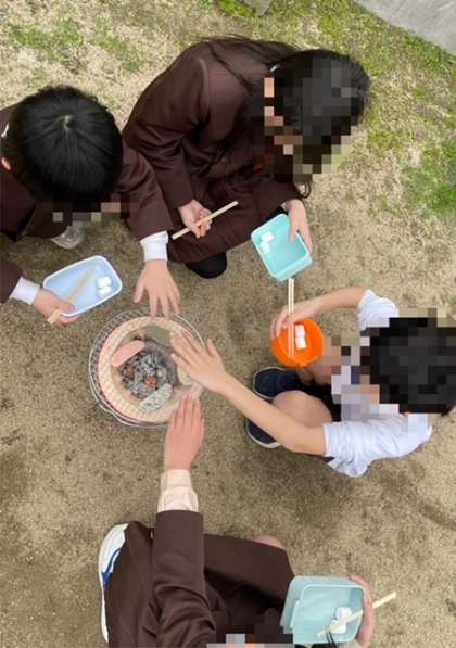 寒いので暖をとってます。 「七輪ってこういう使い方もあるんやなぁ」と友達同士で楽しく会話していました♪