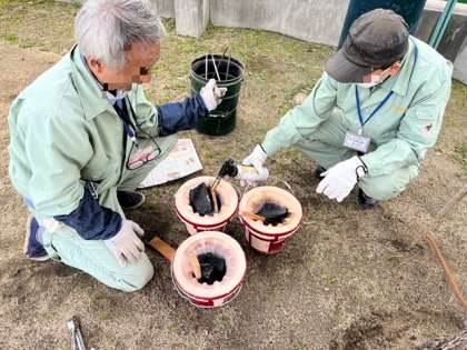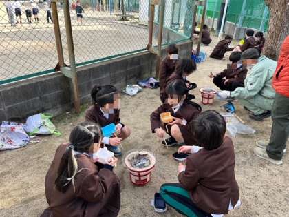 管理作業員さんに炭を起こしてもらって、もち焼きスタートです。