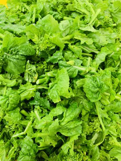 なのはなは、「菜花」や「花菜」とも呼ばれます。春が旬の野菜で、皮ふやのど、鼻のねんまくを強くするカロテンを多く含んでいます。