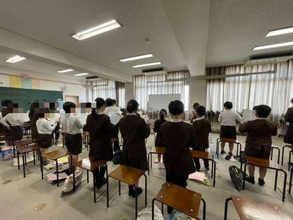 すてきな一歩を歌っている様子です。男子女子パート別に歌っています!上手です♪