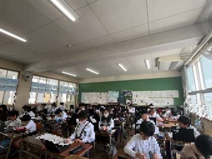 図工の授業風景です。誰一人話すことなく、黙々と取り組んでいます。