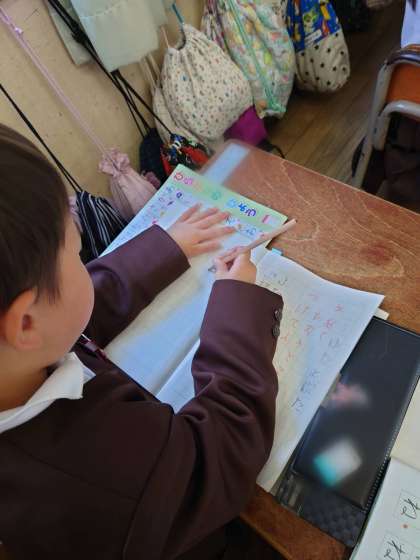 気をつけることが多くて大変ですが、集中して、一文字ずつ丁寧に一生懸命書いていました。