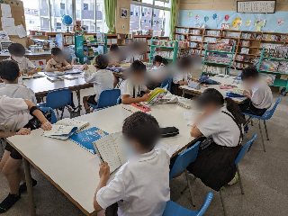 図書委員会が選んでくれた本を3分間で楽しむ3分間読書の取り組みを行いました。自分が興味のある本以外の本も手に取るなど、読書の世界を広げられたようです。