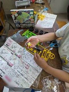 理科は「電気のはたらき」の単元に入りました。先生の指示を聞きながら懸命に実験キットを作っています。
