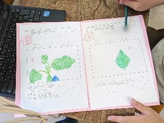 理科で育てているひょうたんの観察をしました。タブレットで写真を撮って観察カードを書いていきます。葉っぱの濃淡や葉脈の有無をしっかり見ながら観察カードを書いていました。