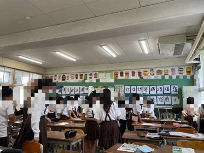 外国語の学習の様子です。英語でじゃんけんをしたり、好きなスポーツビンゴをしたりして、楽しみながら英語を学んでいます。