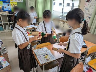音楽の学習でリズム伴奏の面白さに注目してギロやクラベスを演奏しました。