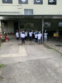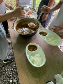 カレーが出来上がった班から、班ごとに食べます。いただきます!