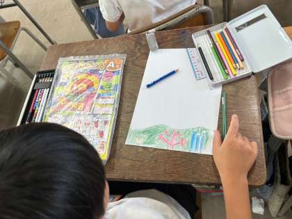 釘打ち部品を付ける場所を考えながらオリジナルの絵を考え描いています。