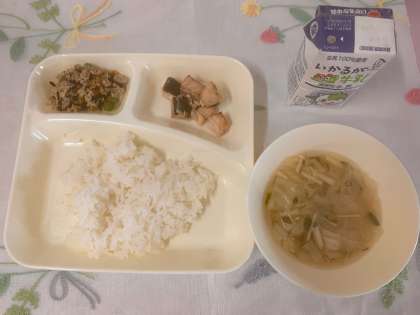 えて煮、高野どうふ(粉末)を一度に加えて煮たらできあがりです。ふわふわの高野どうふに優しい甘さの味つけが美味しいです!