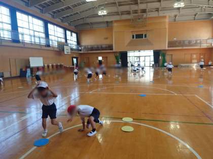 今日はオセロゲーム、サーキット、コーンにタッチしてリレーなど、楽しみながらそれぞれのクラスでたくさん体を動かしていました。