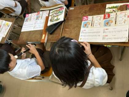 しっかり穴を指で塞いでファの音まで響かせていました♪