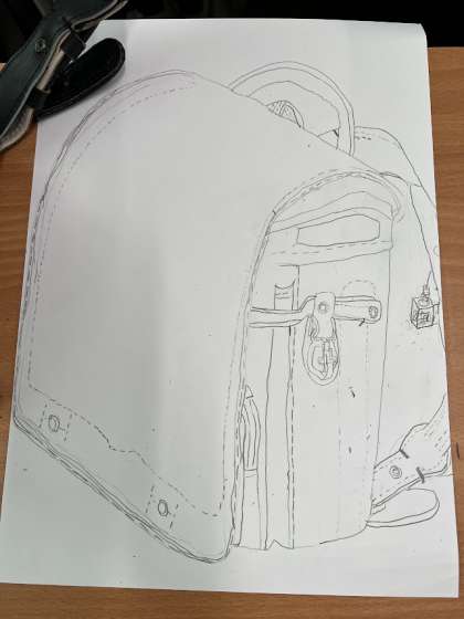 図工では、6年間愛用してきた「ランドセル」を描いています。「こんなことあったなぁ。」と思い出を振り返りながら描いています。