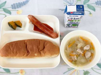 焼きかぼちゃは、調理員さんが1つずつ手作業で、生のかぼちゃを一口サイズに切ってくださっています。塩で下味をつけ、焼き物機、蒸し焼きモードで焼きます。ほっくり甘くて美味しいです!かぼちゃは、βカロテンを多く含みます。βカロテンは、体内でビタミンAに変換されます。皮膚や粘膜を健康にしたり、免疫力を高める働きがあります。