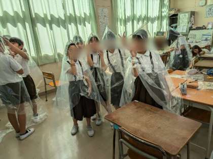 4年生では防災授業としてゴミ袋からレインコートを作りました。ゴミ袋の形を活かしてレインコートを作れることを学びました。またおうちでもお話を聞いてみてくださいね。