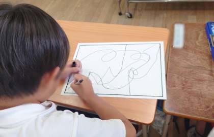 1年生は図工「ひとふでがきで できるもよう」をしました。