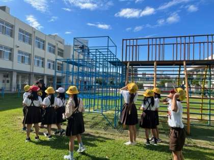 遮光板を通して太陽を見て、「きれい!」「すごい!月みたい!」となかなかしっかり見ることのできない太陽に興奮した様子でした♪