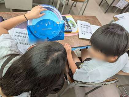理科では月や星の動きを学習しています。星座早見盤を使って、今日の月の形や位置、星の動きを確認しました。