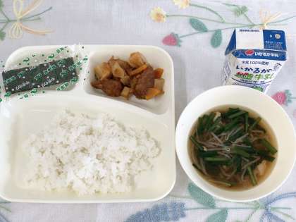 中華みそスープは、しいたけ(乾)をもどす。湯(しいたけ(乾)のもどし汁も使用)をわかし、鶏肉、もどしたしいたけの順に加えて煮ます。煮あがれば、コーン、もやしを加えて煮、塩、こしょう、うすくちしょうゆ、赤みそ、中華スープの素で味つけし、最後ににらを加えて煮ます。