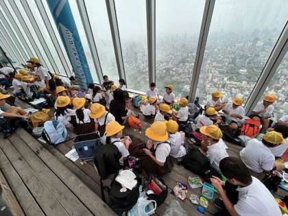 雨により、てんしばには行くことができませんでしたが、58階の展望台でお弁当を美味しく楽しくいただきました♪