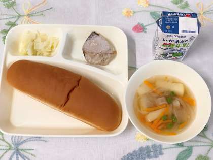 今日の給食時間は、遠足が中止になった1年生の教室に行くと、お家の方が用意してくださったお弁当を嬉しそうに美味しそうに食べていました。かつおのお話やクイズをみんなで楽しみました。
