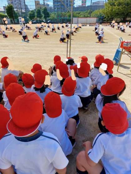 昨日は一年生と一緒に運動会の練習で、お互いのダンスを見合いっこしました。