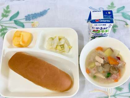 本日は秋に美味しいさつまいもや柿が登場しています!秋は味覚の秋!美味しい食べ物がたくさんあります。給食は、季節を感じられることができるのも大きな特徴です。