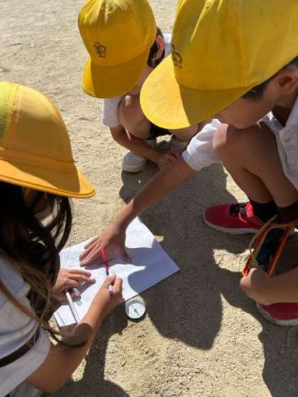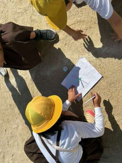 「太陽もかげも場所が変わってる!」と時間によって太陽と影の位置が変化することに気がついていました!