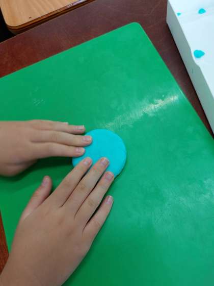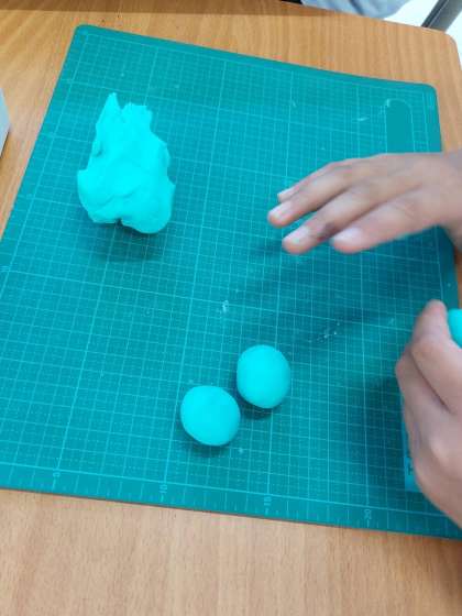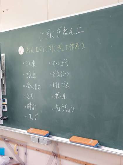 子どもたちは粘土をにぎにぎする活動に取り組みました。