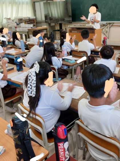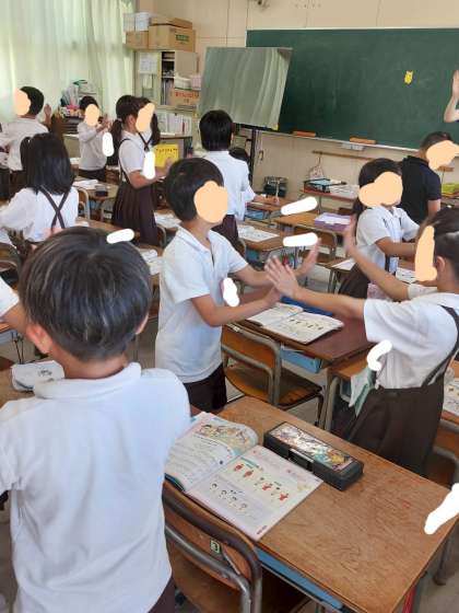 音楽では、「8分休符」のリズムをしました。子どもたちは手拍子でリズムをとっていました。