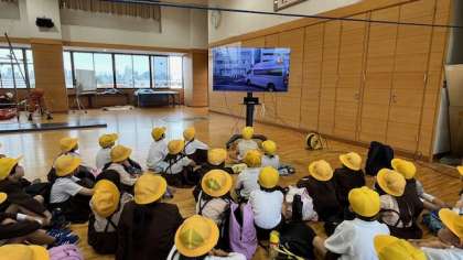 消防士の仕事について紹介されているDVDも見せていただきました。子どもたちから「消防士さんになりたい!」という声も上がっていました。