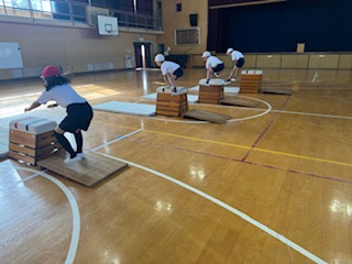 今、跳び箱、ハードル走、縄跳びに取り組んでいます!