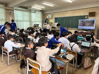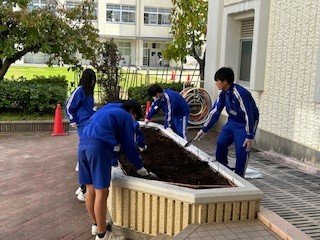 低学年の学習支援や、管理作業員さん、事務職員さんのお手伝いをしながら、学校での様々な仕事を体験しています。
