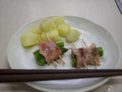 家庭科の学習で調理実習を行いました。今回の献立は、粉ふきいもとアスパラベーコン。