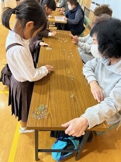 1・2年生が、地域の方より昔遊びを教えてもらいながら、一緒に触れあいました。