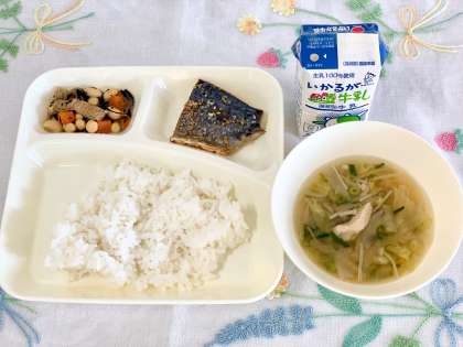 さごしのごまじょうゆかけは、料理酒で下味をつけ、焼き物機で焼きます。みりん、うすくちしょうゆ、湯をあわせて煮立て、火を止め、煎(い)ったいりごまを加え、配缶時にさごしにかけます。いりごまの香ばしさが、いい仕事をしてくれます。