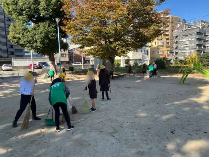 地域の方といつも遊んでいる菅原公園を掃除しました。