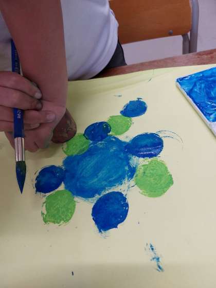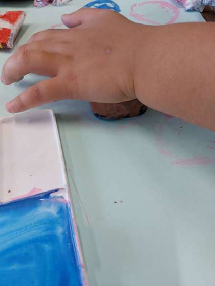 子どもたちは、いろいろな模様をつくったり、思い思いの場所に判を押しました。